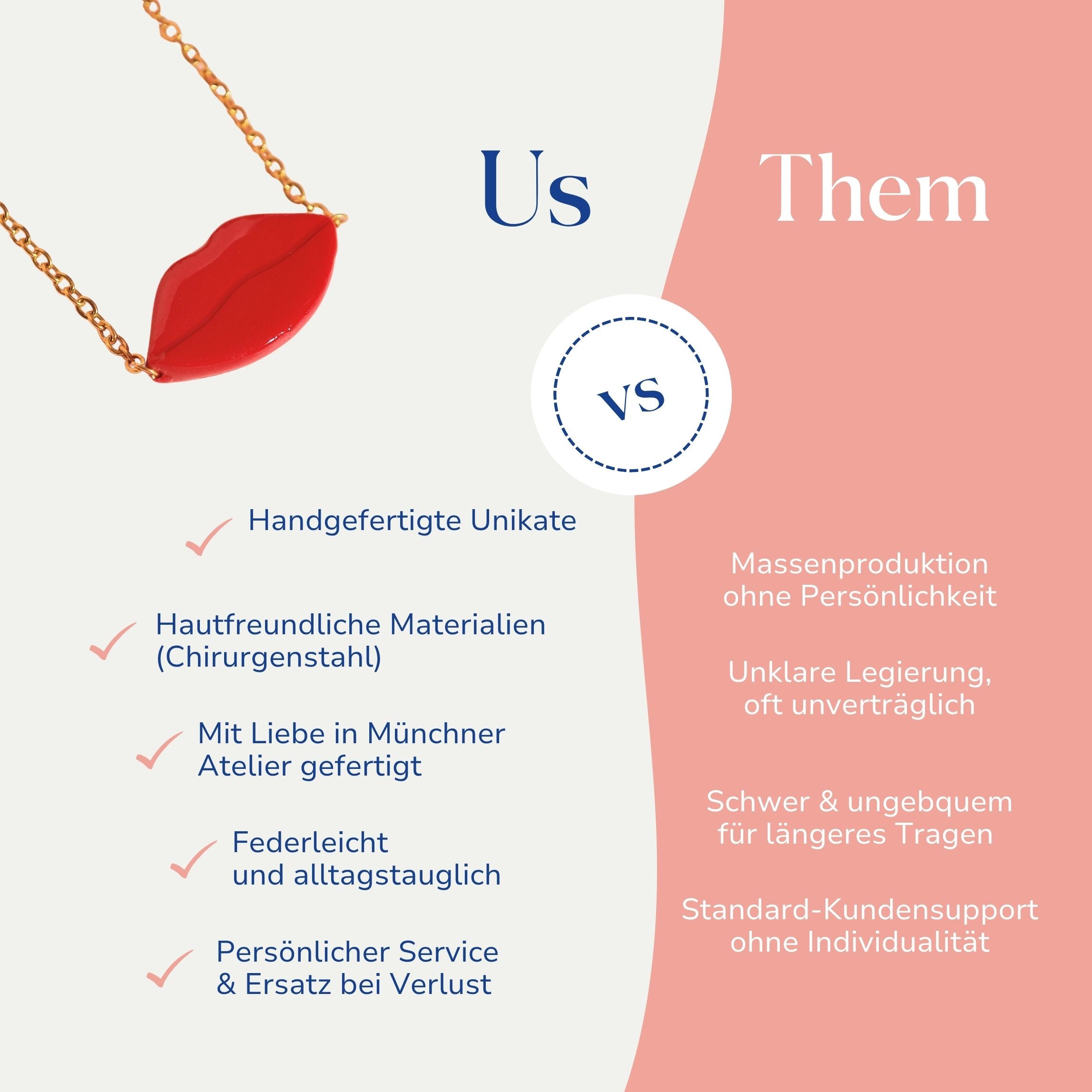 Die Red Kiss Halskette ist ein echtes Statement Piece – verspielt, elegant und voller Charakter.