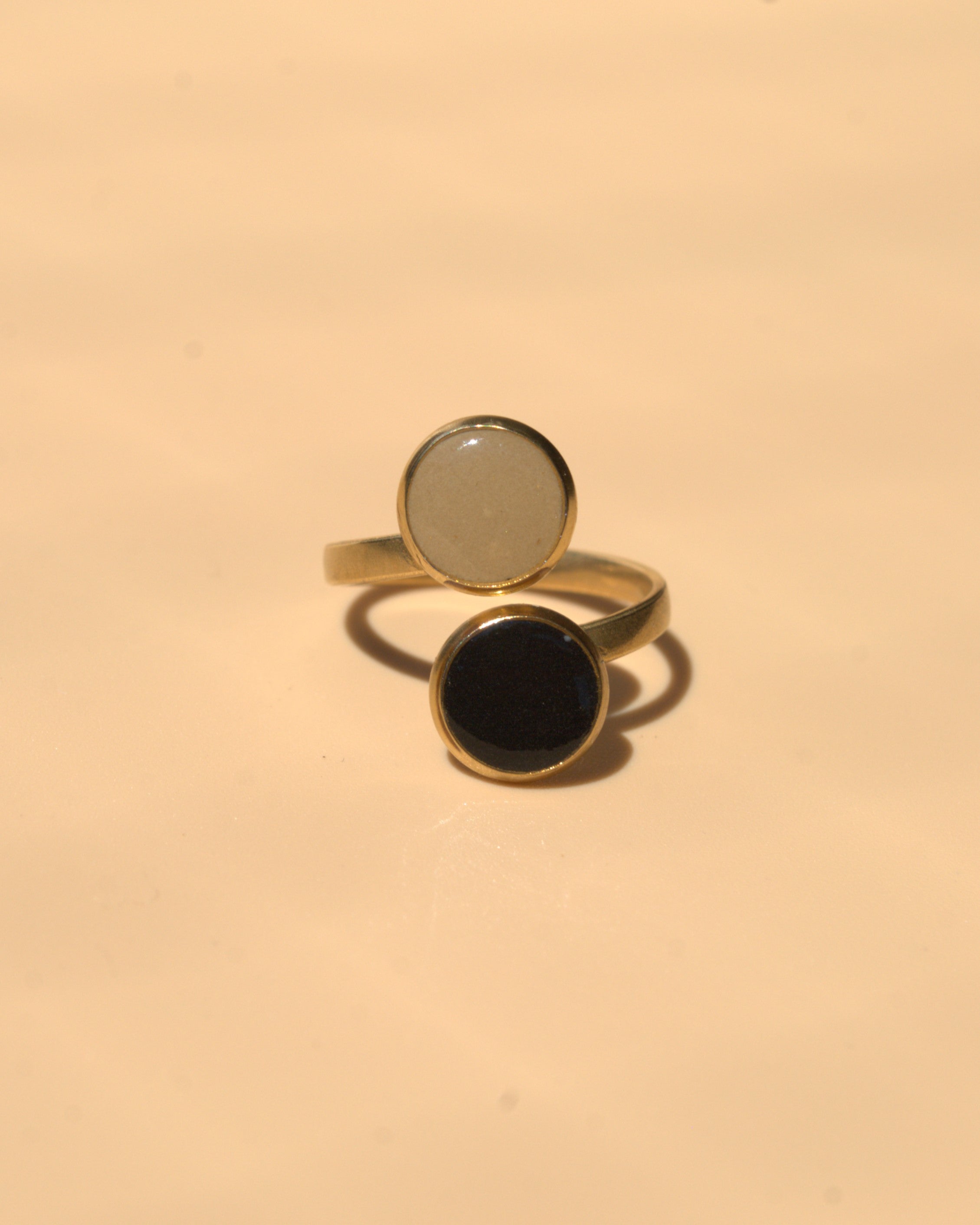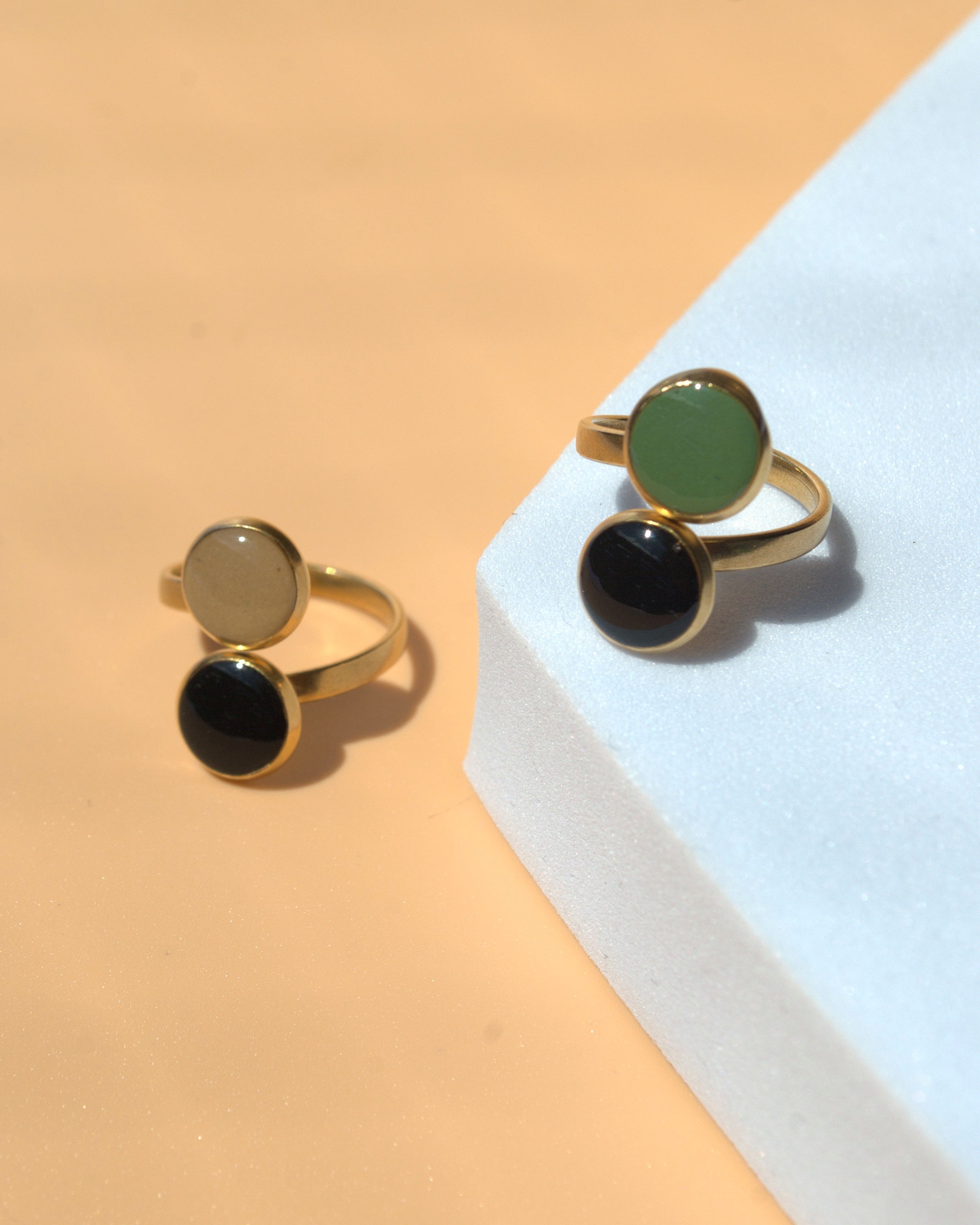Dieser farbenfrohe Ring bringt verspielte Leichtigkeit und modernes Design zusammen. Handgefertigt aus Polymer Clay in sanftem Karamell und Mint-Ton, setzt er ein klares Statement – ohne schwer zu wirken. Dank des verstellbaren Rings aus hochwertigem Edelstahl passt er sich jedem Finger an.