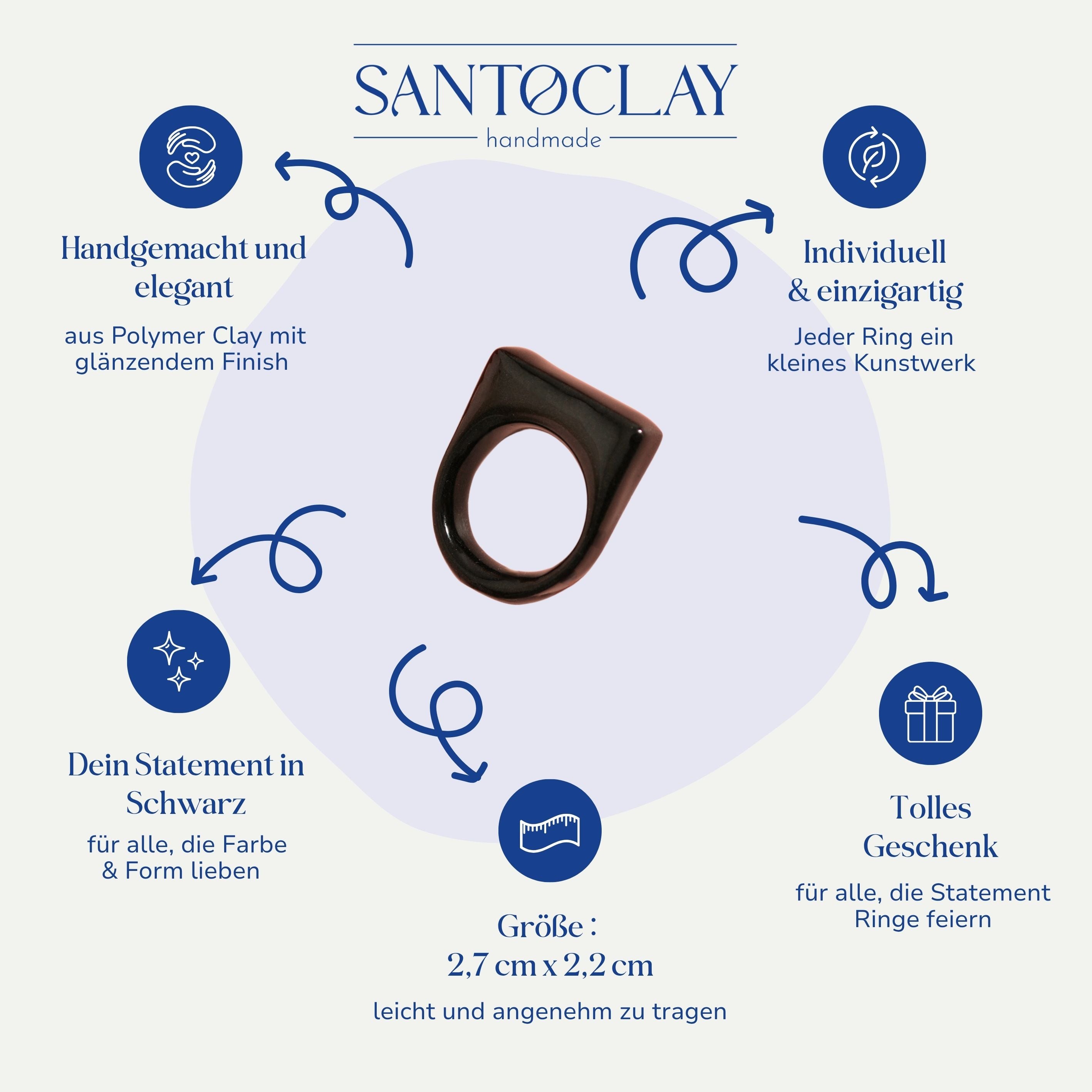 Statement Ring Schwarz | Handgemachter Polymer Ring