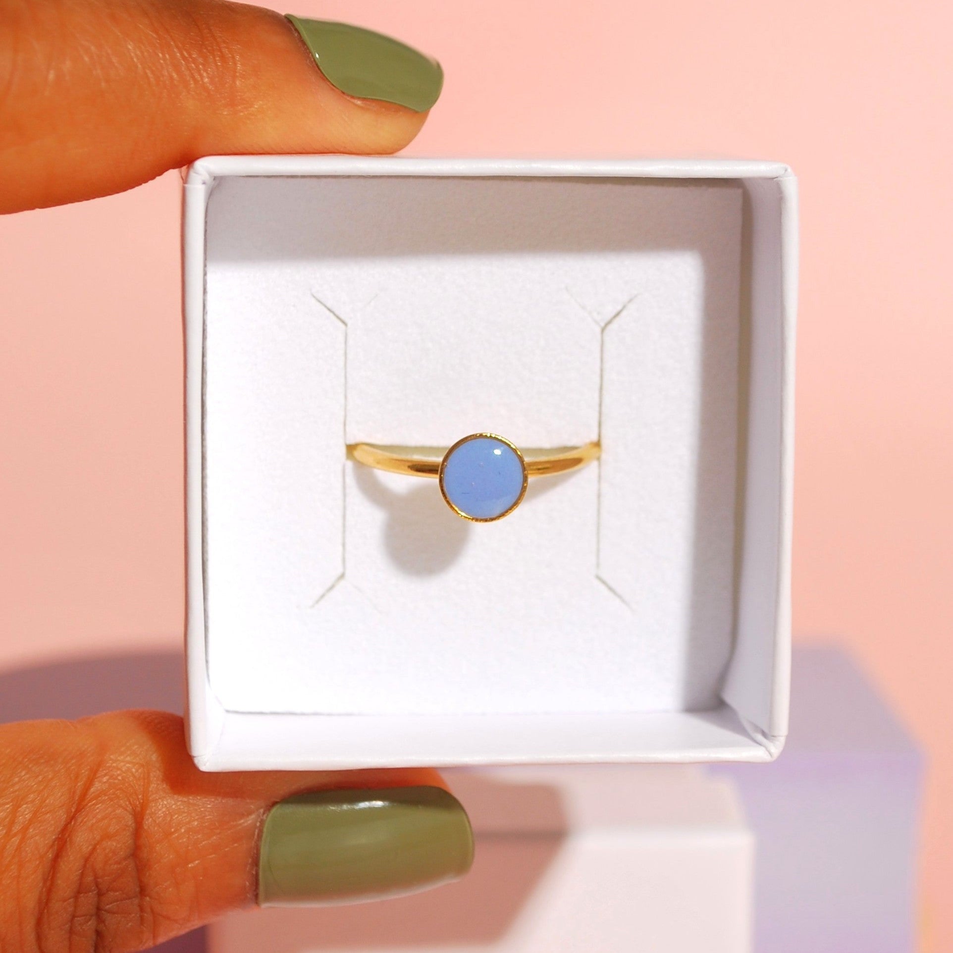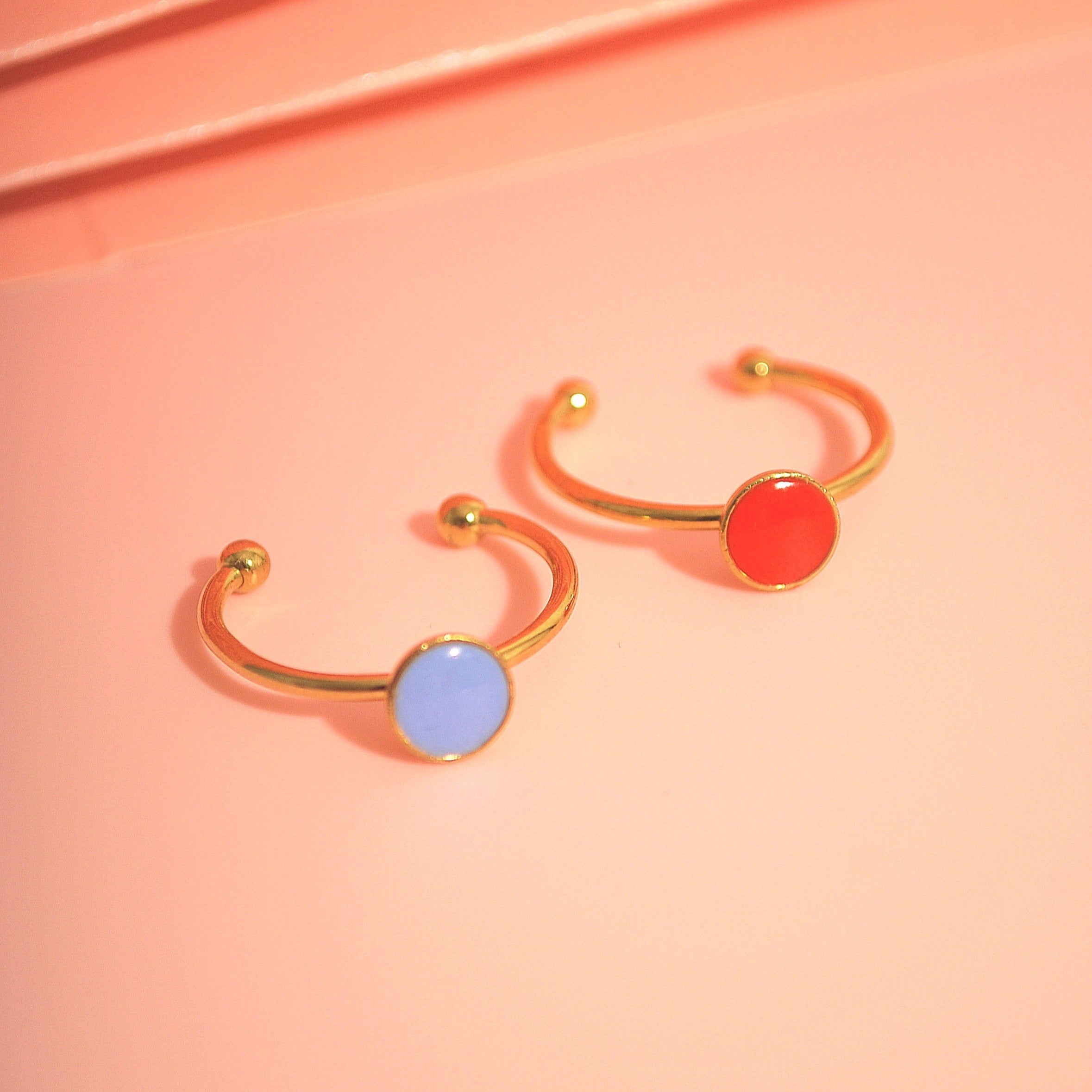 Dieser handgefertigte Ring kombiniert minimalistisches Design mit der kraftvollen Wirkung von Farbe. Das zarte Detail aus Polymer Clay ist von Hand geformt und bringt in Lavendel oder leuchtendem Orange ein stilvolles Statement an deine Hand. Der Ring selbst besteht aus hochwertigem Edelstahl – robust, allergikerfreundlich und verstellbar für maximalen Komfort.