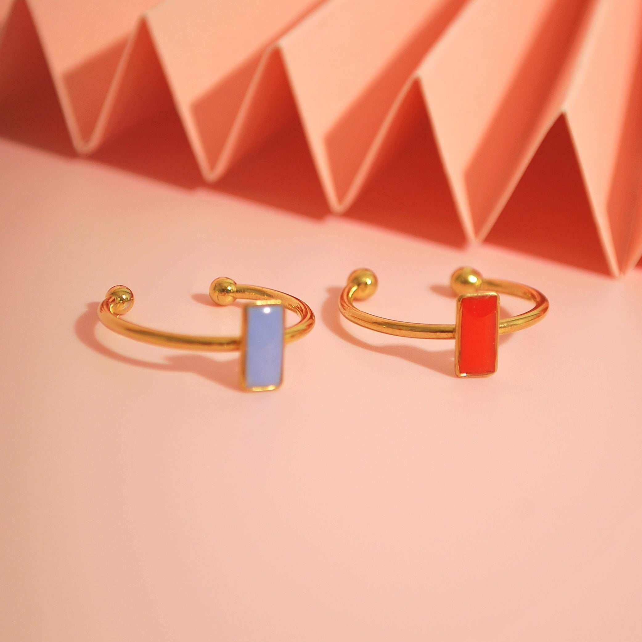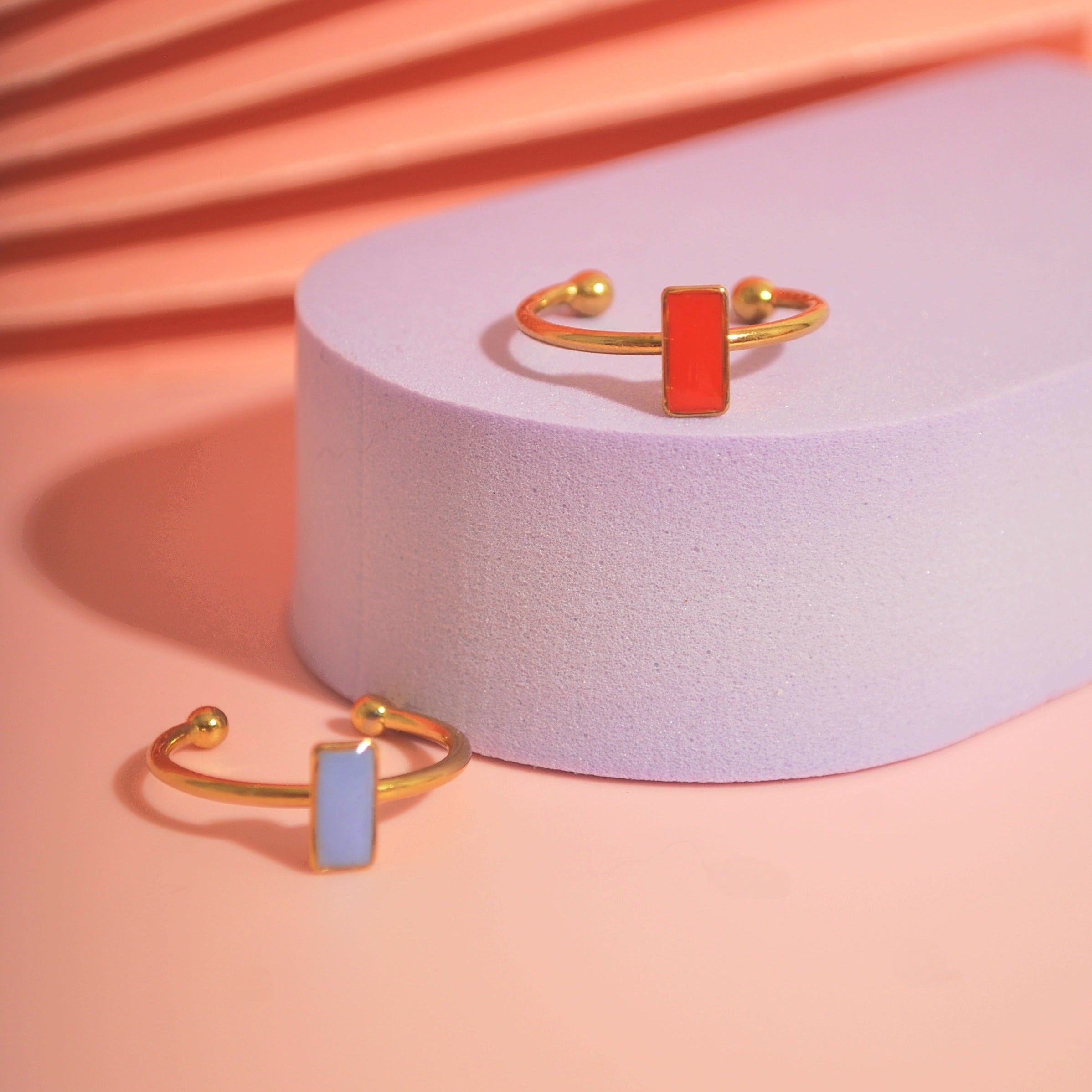 Statement, aber subtil – dieser handgefertigte Ring vereint klare Formen mit frischen Farben. Das rechteckige Detail aus Polymer Clay in Lavendel oder Orange setzt einen verspielten Farbakzent, der perfekt zu deinem individuellen Stil passt. Gefertigt aus hochwertigem, allergikerfreundlichem Edelstahl ist er nicht nur langlebig, sondern auch ultraleicht und angenehm zu tragen. Die offene Form macht ihn flexibel und anpassbar an verschiedene Fingergrößen – ganz ohne Kompromisse bei Komfort oder Design.