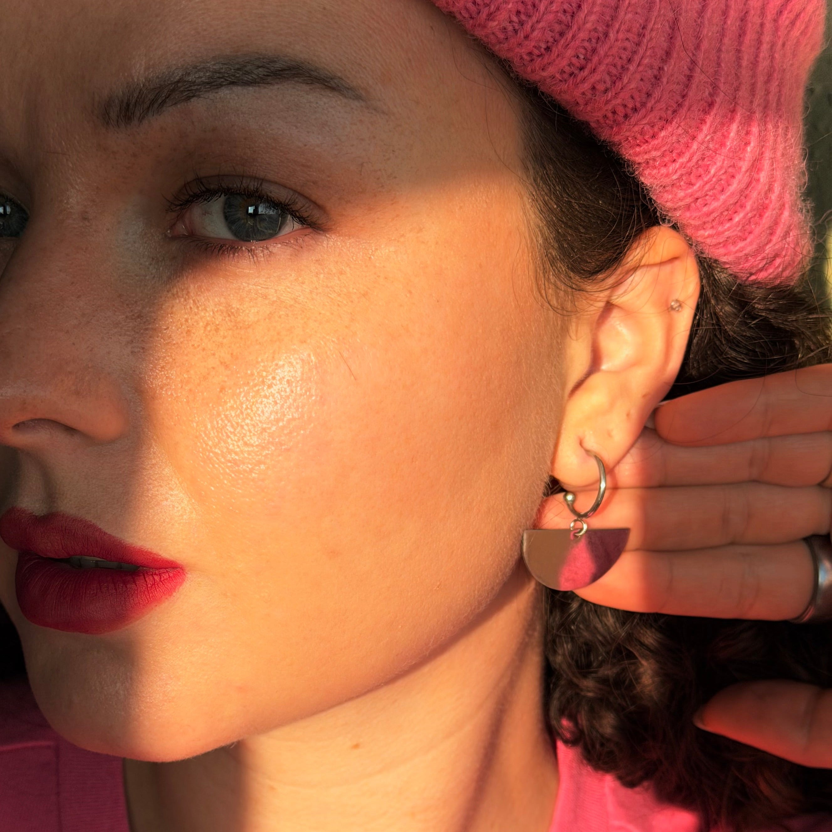 Diese Creolen aus der neuen Milano Kollektion sind ein eleganter Eyecatcher mit architektonischem Flair. Die geometrischen Halbkreis-Anhänger hängen an minimalistischen Creolen und schwingen bei jeder Bewegung mit. Gefertigt aus robustem chirurgischem Edelstahl, erhältlich in puristischem Silber oder mit edler 24K Vergoldung – für kraftvolle Looks, die bleiben.Die Ohrringe kommen in einer hochwertigen Santoclay Schmuckbox – ready to gift!